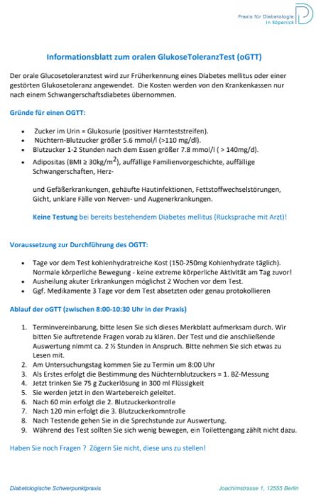 - Durchführen und Bewertung eines orale Glucosetoleranztestes (oGTT)